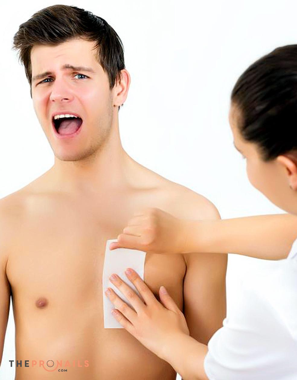 Step 2: Strips of paper or cloth are pressed over the wax, then pulled off in the direction of hair growth.
